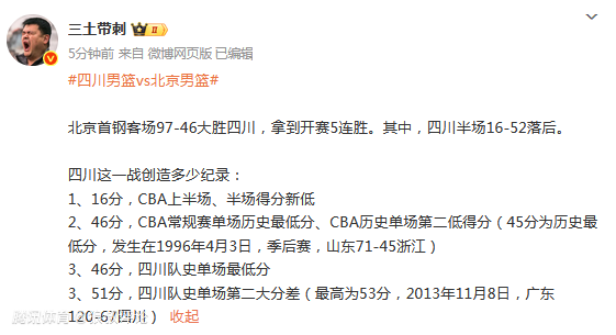而本场比赛,四川男篮创造多个历史尴尬纪录。