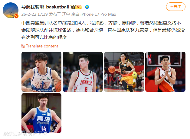 篮球博主“导演我躺哪”透露了中国男篮的裁员名单,并透露集训队名单缩减到了14人。