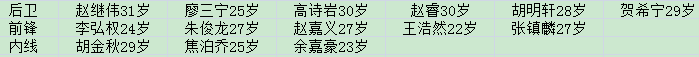 后卫:赵继伟、廖三宁、赵睿、高诗岩、胡明轩、贺希宁;