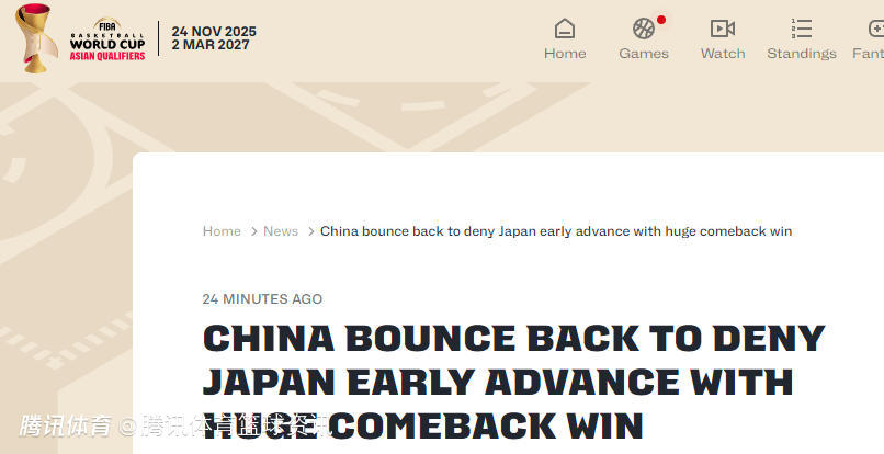 北京时间2月26日,中国男篮在男篮世预赛亚大区小组赛中87-80击败日本男篮。赛后,FIBA官网发文点评比赛,认为第三节比赛是全场的转折点,还点赞了贺希宁、赵继伟和胡金秋的表现。