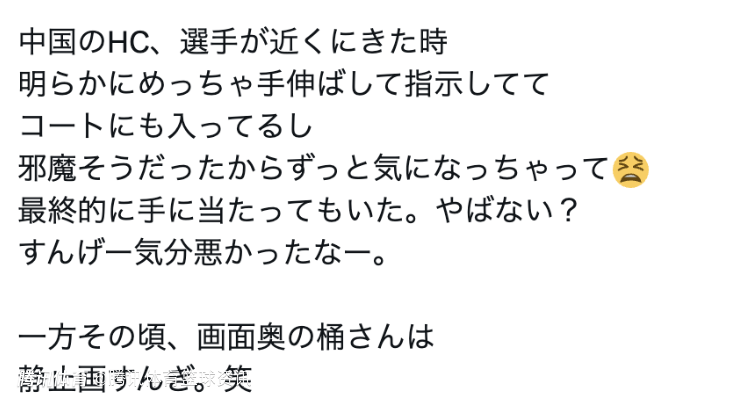 本场比赛出现不少对于中国队的不利判罚,但也有一个场面引发日本球迷不满。日本媒体《体育日本》记者尾崎有希在现场观赛。赛后,在发布战报时,该名记者也配上了郭士强“抢断”富永启生的照片,并配上“第4节,富永启生在运球突破时被对方主教练(左)挡下。”