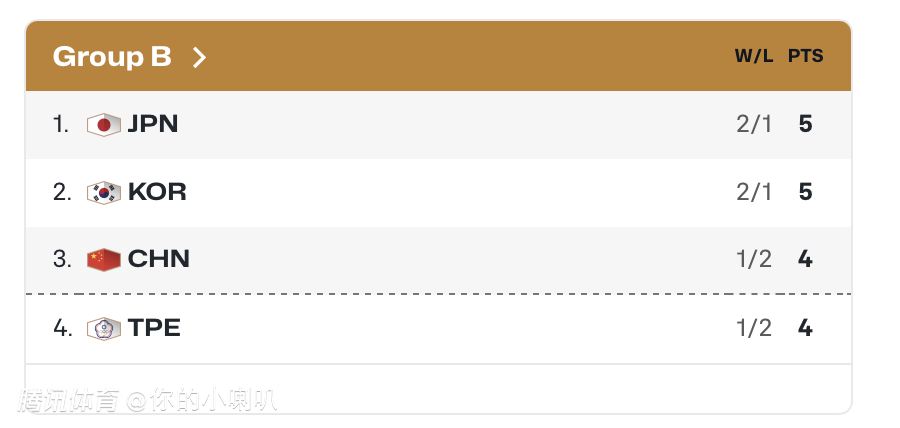 中国男篮上一场客场15分逆转日本,收获本届世预赛首胜,提振士气!中国台北男篮上一场也击败韩国男篮,拿到首胜。目前B组排名,日本第一、韩国第二、中国第三、中国台北第四。