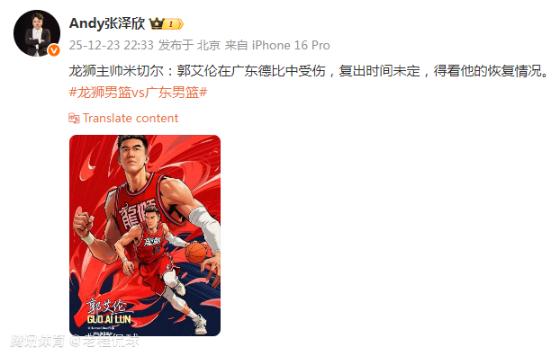 “龙狮主帅米切尔:郭艾伦在广东德比中受伤,复出时间未定,得看他的恢复情况。”该媒体人在社媒上写道。过去几个赛季,该媒体人曾频繁以广州男篮主队解说的身份解说比赛。
