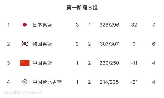 本场比赛的结果,对于中国男篮来说,某种程度比较利好的消息,随着日本韩国男篮拿到三胜,只要中国男篮击败中国台北男篮,同样是两胜,而比拼净胜分方面,若是超过11分,中国男篮有望冲上第二的位置。
