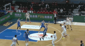 刘铮上半场结束前高难度三分反超比分。