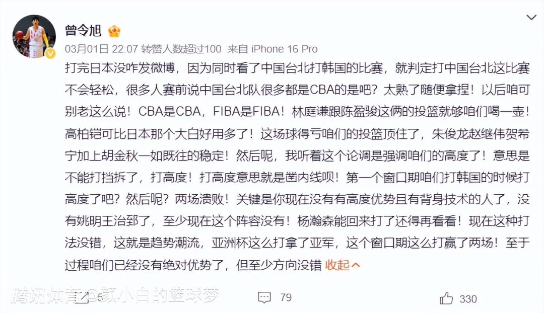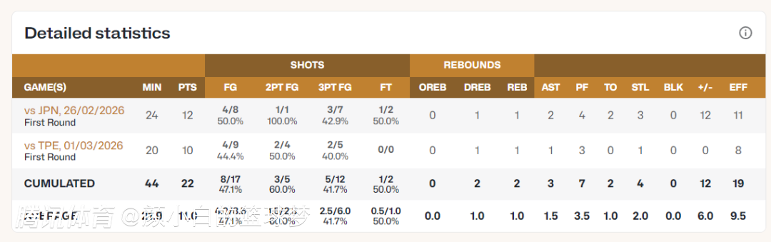 对阵中国台北的第二节贺希宁的个人表现也非常出色,短短4分13秒,4中3,三分3中2,拿到8分,两个45度的干拔三分球太准了。这两场比赛贺希宁得分都上双。
