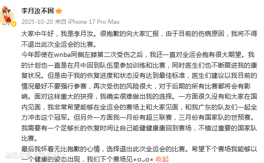 李月汝由于伤病问题,此前迎来了相当长一段时间休息和调整时间,也因此缺席了大湾区全运会,直至今年的年初才复出。