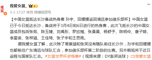 此次除了蒋紫涵和张笑没有随队前往长沙外,孙宇和田媛媛也都前往广东清远与球队汇合,参加俱乐部杯第二阶段的比赛。