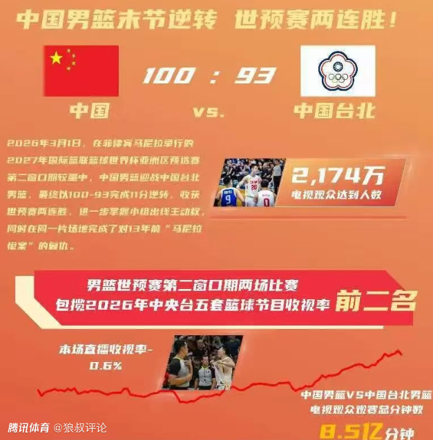 北京时间3月5日,根据中国篮协官方社媒的发文,2027国际篮联篮球世界杯第二窗口期,中国男篮客场逆转日本,中国台北的比赛,深受外界的关注,电视转播人数更是屡创高峰。
