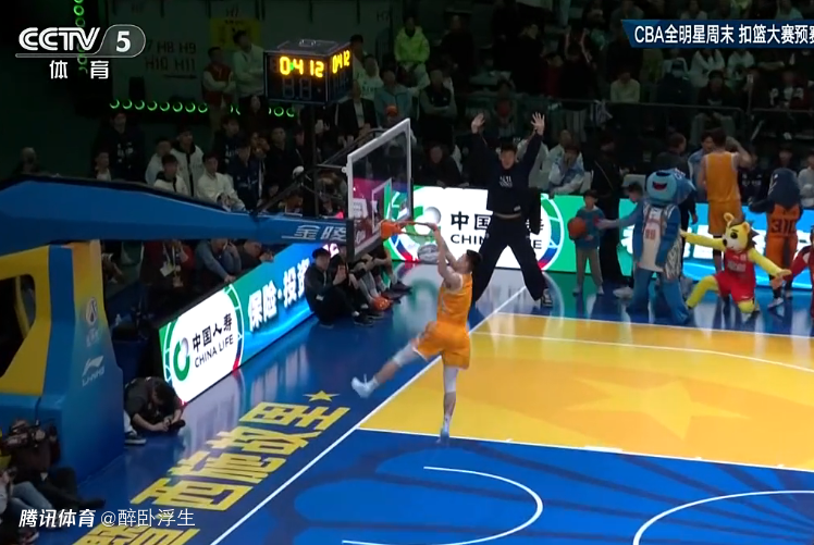 第3位出场的是宁波球员戴昊,他前两次尝试转体单臂风车暴扣连续被篮筐封盖,第3次尝试转体小拉杆风车暴扣得到42分。