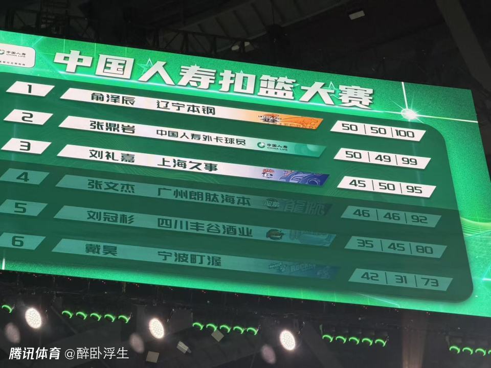 北京时间3月7日,2026年CBA全明星扣篮大赛预赛,俞泽辰100分,张鼎言99分与刘礼嘉95分排名前三,俞泽辰两扣均50分满分,张鼎言与刘礼嘉各有一次50分满分扣篮,3人携手晋级扣篮大赛决赛。