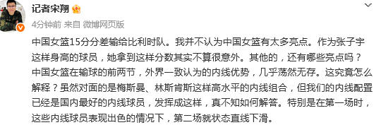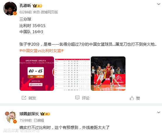 媒体人球圈赵探长发文点评:确实打不过比利时,这个有预想到,外线差距太大了。