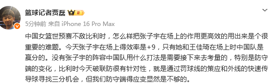 篮球记者贾磊发文点评: