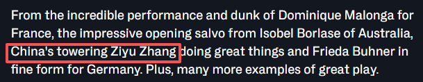 FIBA官网写道:“赛程已过两场,还有三场较量即将到来,赛事中不少年轻球员已经惊艳亮相。从法国球员多米尼克-马隆加的惊艳表现与扣篮,到澳大利亚选手伊莎贝尔-博莱斯开局状态火热,再到中国内线高塔张子宇的出色发挥,以及德国球员弗里达-布纳的上佳状态,赛场中还有诸多精彩表现值得关注。”FIBA官网还号召球迷们进行投票,评选出心目中最具影响力的年轻球员。