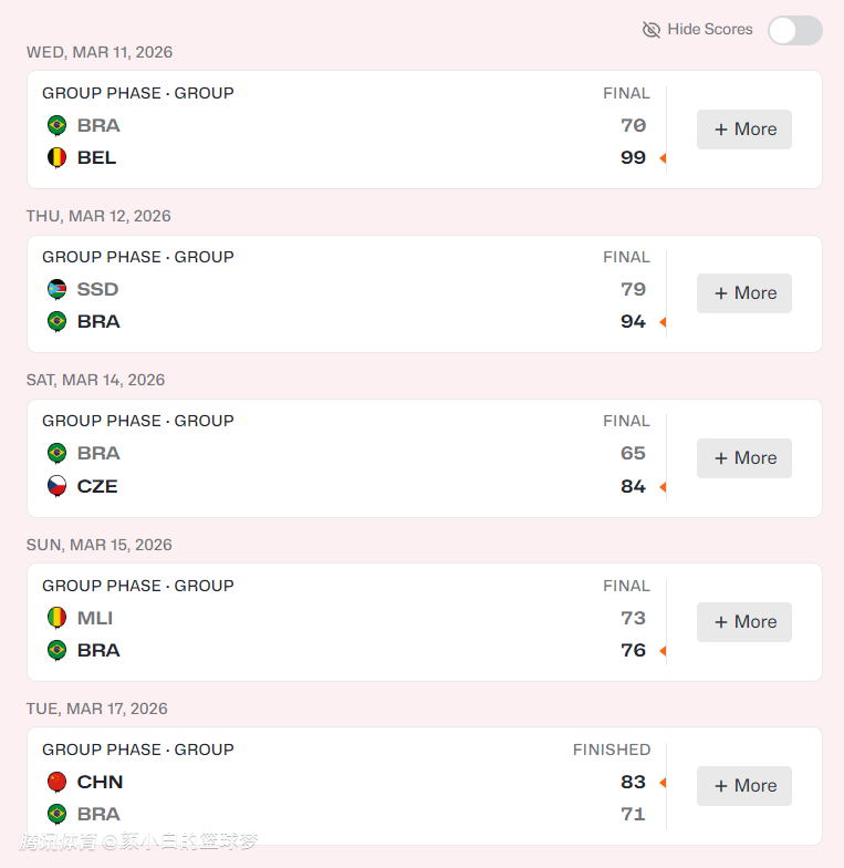 巴西队未能拿到门票只能怪这套阵容过于孱弱,他们面对捷克居然65-84惨败,输给捷克后她们的命运就交给了对手。(而且赢马里那场净胜分只有+3)