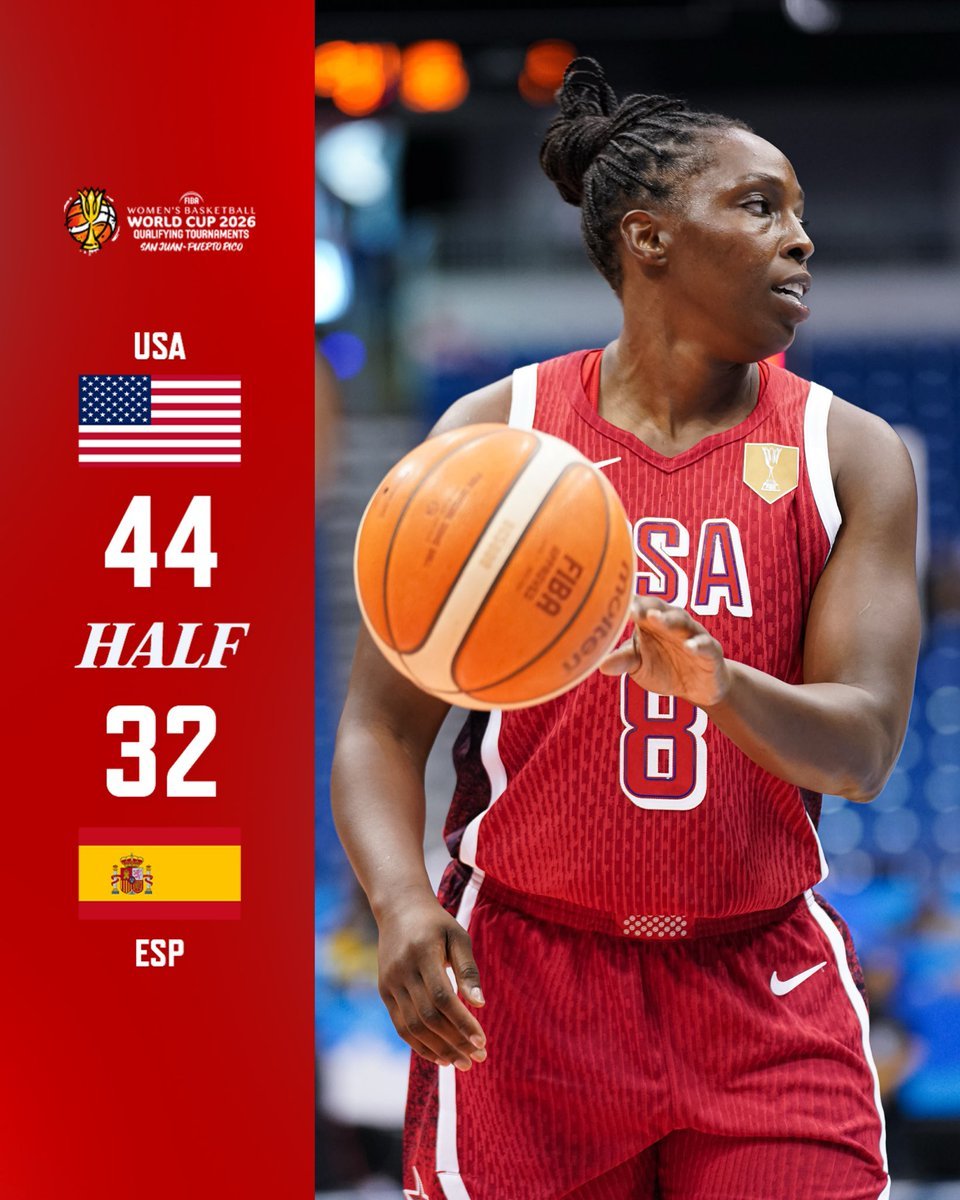 次节回来还剩9分48秒时,布埃纳维达3分跳投命中,卡里昂完成助攻,西班牙追至19:21。第二节还剩8分31秒时,法姆上篮命中扳成21:21,但随后美国由普鲁姆、布克斯等连续在内外线取分,第二节还剩5分29秒时库珀接扬助攻命中3分,比分来到23:34。半场结束,西班牙32:44落后美国。