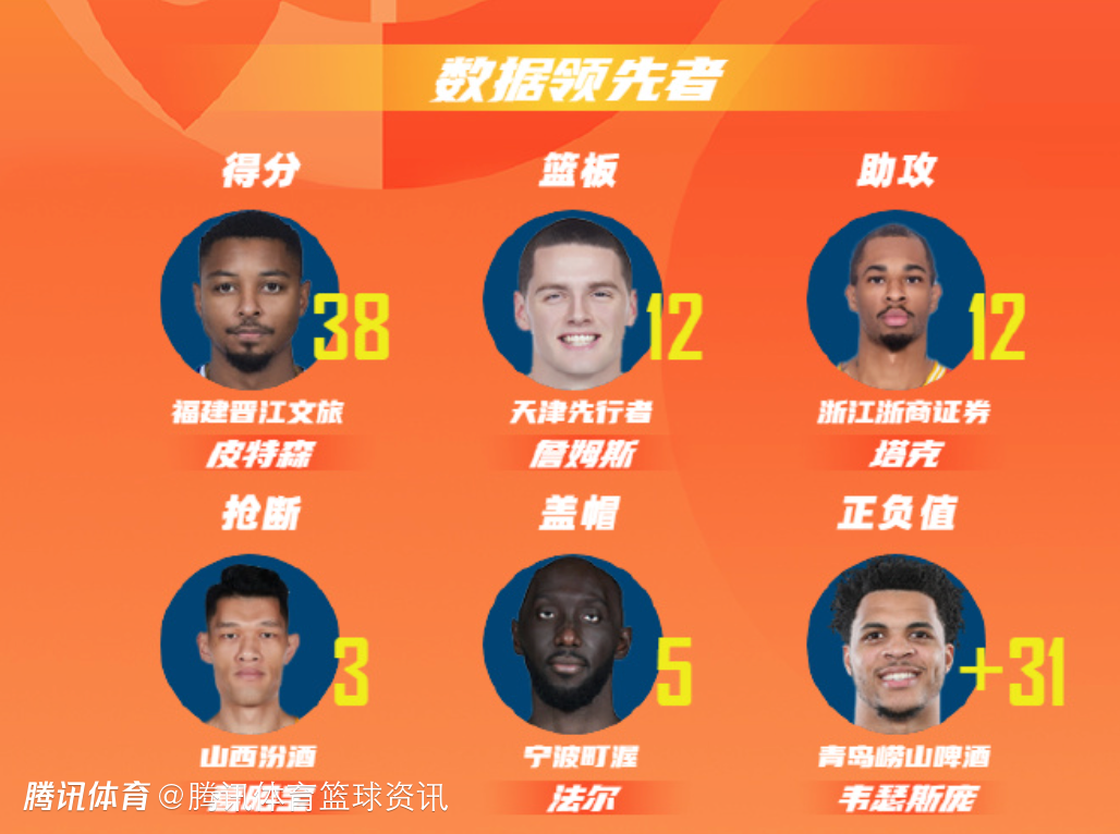 福建晋江文旅球员皮特森以单场38分的数据领衔得分榜;