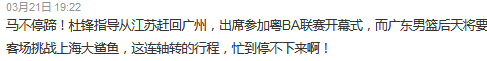 但“粤BA”的开幕式,刚刚打完江苏客场的杜锋,并没有跟队前往上海,而是返回广东引发不少球迷的热议。认为他身兼多职,是否真能完全兼顾下来引发争议。