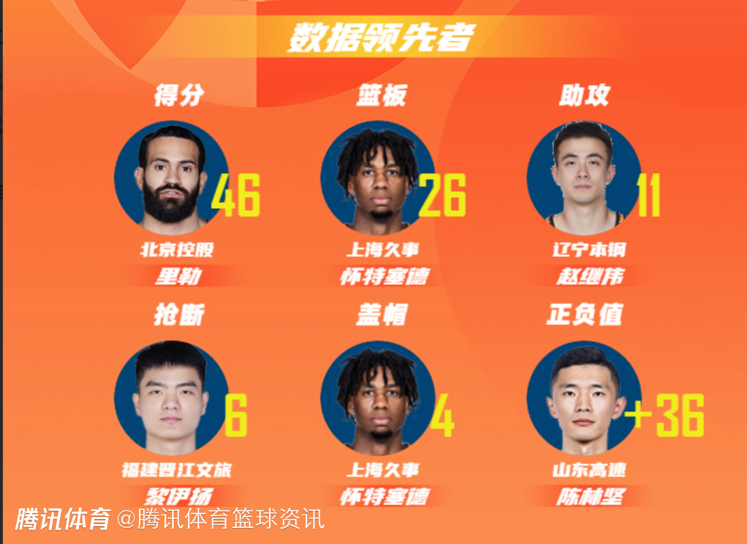 北京控股球员里勒以单场46分的数据领衔得分榜;