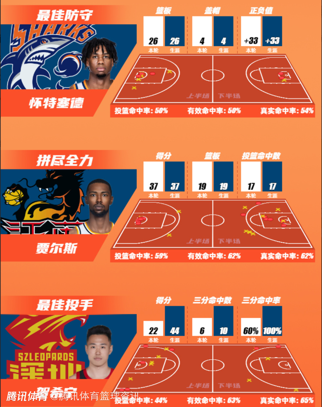 山东高速篮球俱乐部球员陈林坚以+36的正负值领先。