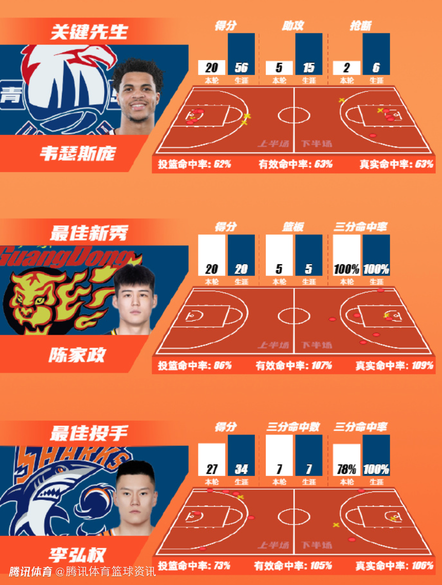 北京时间3月27日,CBA官方公布了常规赛第30轮数据战报和最佳阵容名单,来自上海久事大鲨鱼的李弘权(27分7三分),青岛国信海天篮球俱乐部的米奇(23分3盖帽),浙江广厦篮球俱乐部的胡金秋(32分5篮板),深圳新世纪烈豹篮球俱乐部的贺希宁(31分4篮板)和南京同曦篮球俱乐部的帕克(44分13助攻)入选CBA联赛常规赛第30轮最佳阵容!