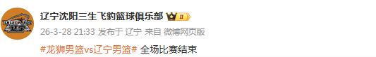 赛后,辽宁男篮官方社媒更新赛果引发大量的球迷不满。