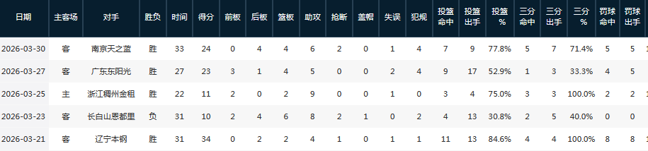 过去5场比赛全部得分上双,合计飙中15记三分,场均高达20.2分,呈现出现象级别的状态。