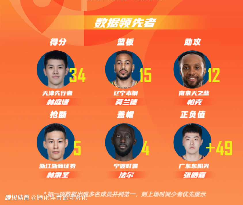 天津荣钢篮球俱乐部球员林庭谦以单场34分的数据领衔得分榜;