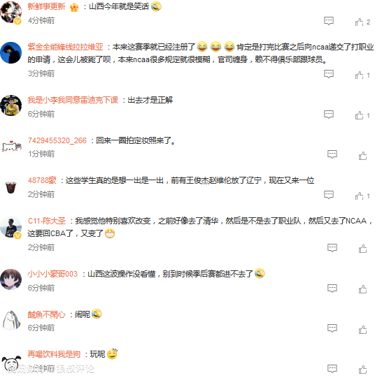 有球迷评论说道:我感觉他特别喜欢改变,之前好像去了清华,然后是不是去了职业队,然后又去了NCAA,这要回CBA了,又变了。