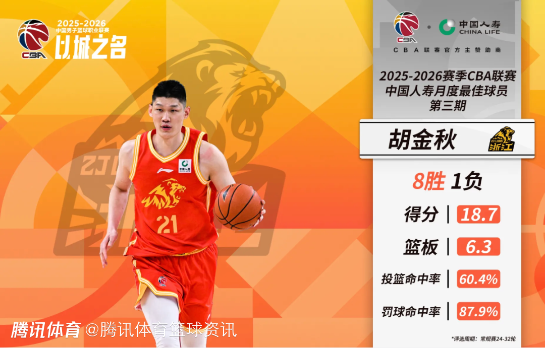 【2025-2026赛季第三期中国人寿月度最佳国内球员——胡金秋】