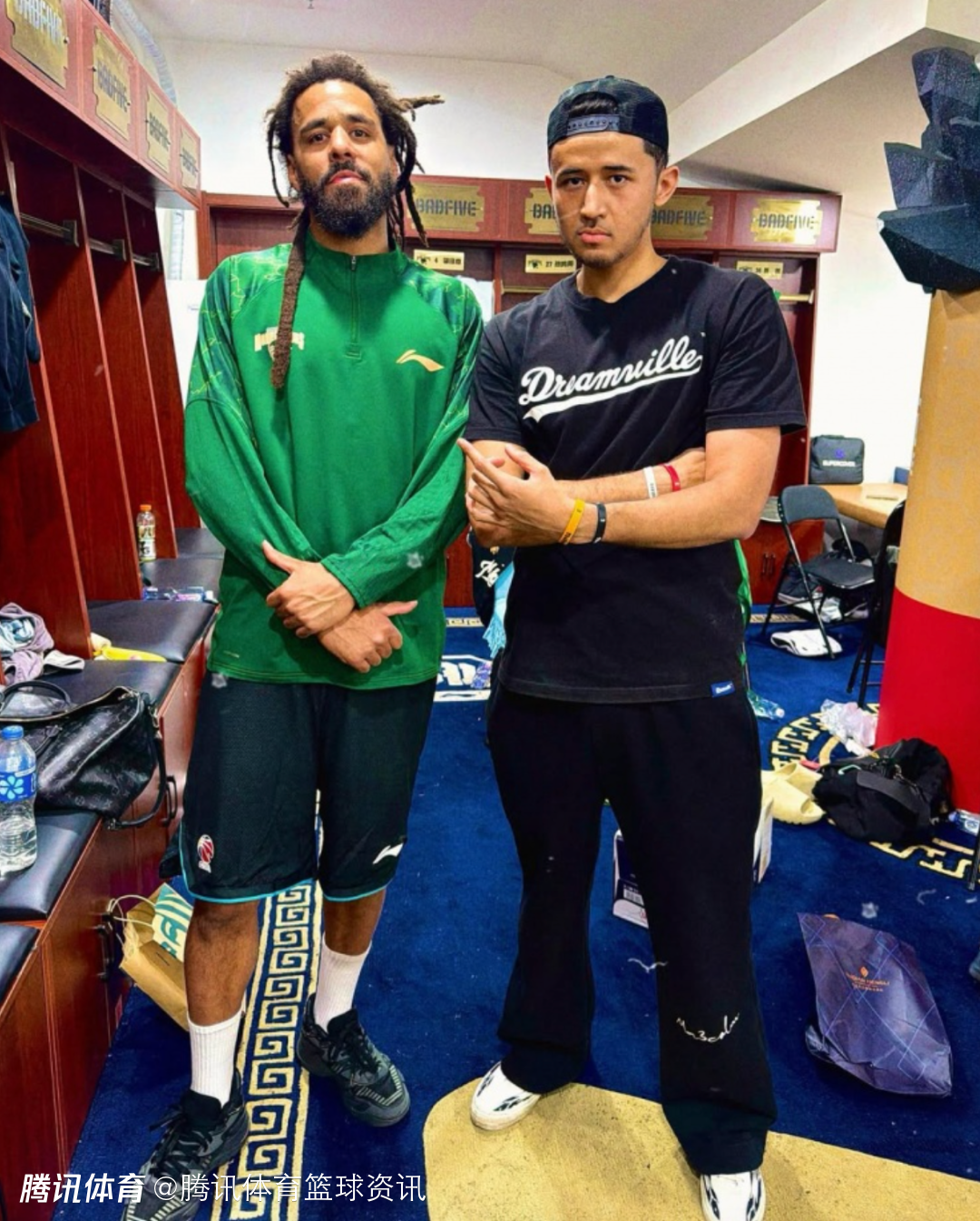 北京时间4月3日,此前,著名说唱歌手J.Cole确定加盟CBA,将和同曦男篮签约,昨日同曦男篮主场不敌宁波男篮的赛后,同曦球员郭昊文和宁波球员卡米然也和J.Cole合影留念。