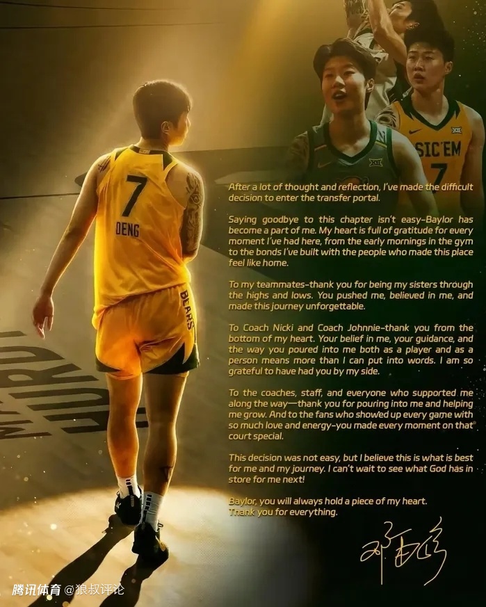 中国篮球的海外留洋大军当中,效力旧金山大学王俊杰申请转校后,女篮体系当中,效力贝勒大学邓雨婷同样申请转校引发外界的热议。