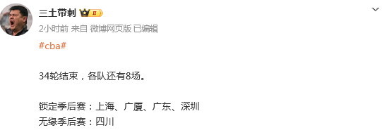 截止到目前,前四的球队当中,上海,广厦,广东,深圳都已经提前8轮锁定了季后赛名额。