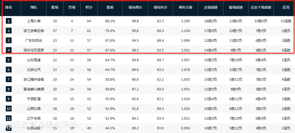 其中,广东是连续31年进入季后赛的神迹。深圳一波9连胜后,整体势头非常凶猛。