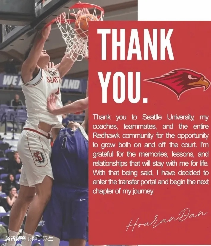 除此之外,另一位中国球员淡厚然也宣布转校,他通过社媒写道:“感谢西雅图大学,我的教练们,队友们,以及一路支持我的所有人。我感激在这里收获的经历、教训和建立的友谊,将永远伴随我。如今我已决定启动转学流程,开启人生新篇章。”