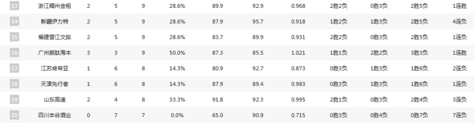 此外,值得一提的是上个赛季无缘季后赛的宁波,天津均取得4胜3负的战绩,而重建当中的广州更是达到了3胜3负,反观山东遭到2胜4负的艰难开局。