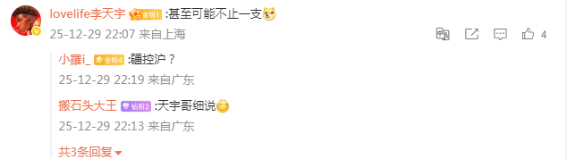 值得一提的是,另一位媒体人李天宇在赵探长社媒评论区留言:“甚至可能不止一支。”
