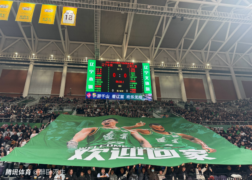 辽宁球迷主场巨幅海报欢迎张镇麟与弗格“回家”。