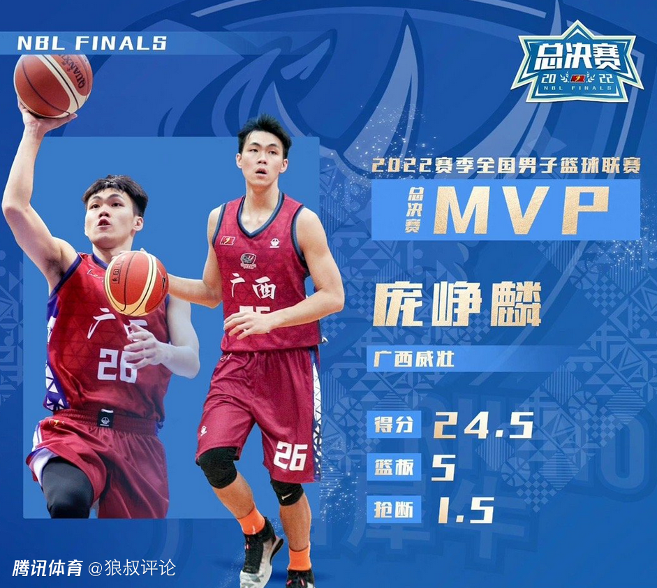 2022赛季NBL联赛总决赛,广西威壮再次击败陕西信达,成功卫冕,庞峥麟当选总决赛最有价值球员,并获得常规赛助攻王。