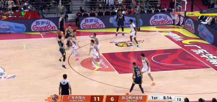 第三节,徐杰和奎恩成为广东后场进攻点,徐杰登场7分钟,快攻2分,以及反击当中选择三分投篮,连得5分。