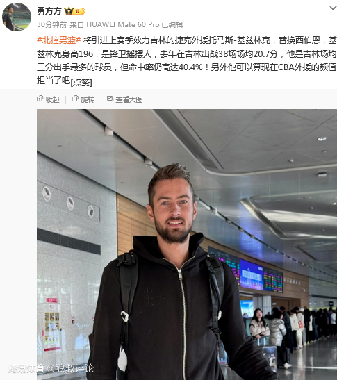 此外,北控男篮将引进上赛季效力吉林的捷克外援托马斯-基兹林克,替换西伯恩。