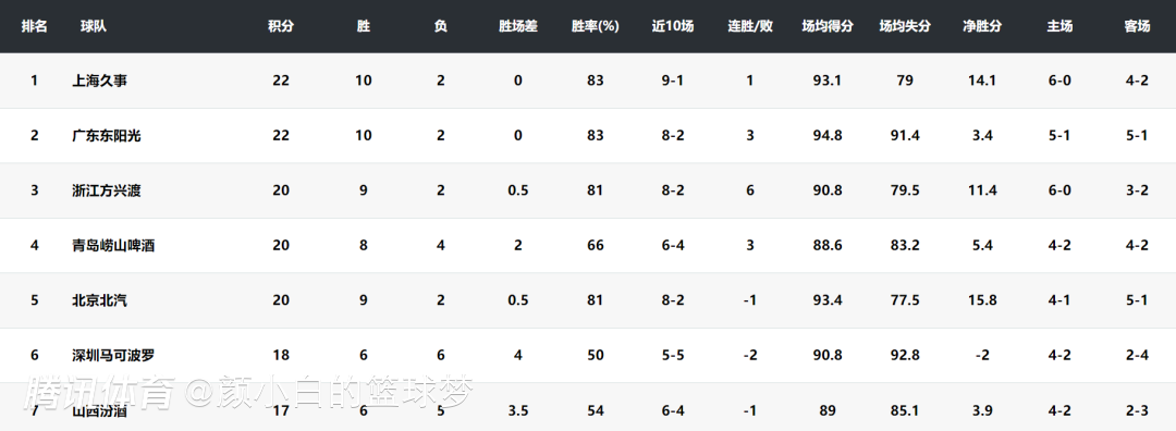 上海男篮经过这一波八连胜,目前10胜2负稳居联赛第一的位置,而上赛季同期上海的战绩只有2胜10负,这个差距非常之明显。