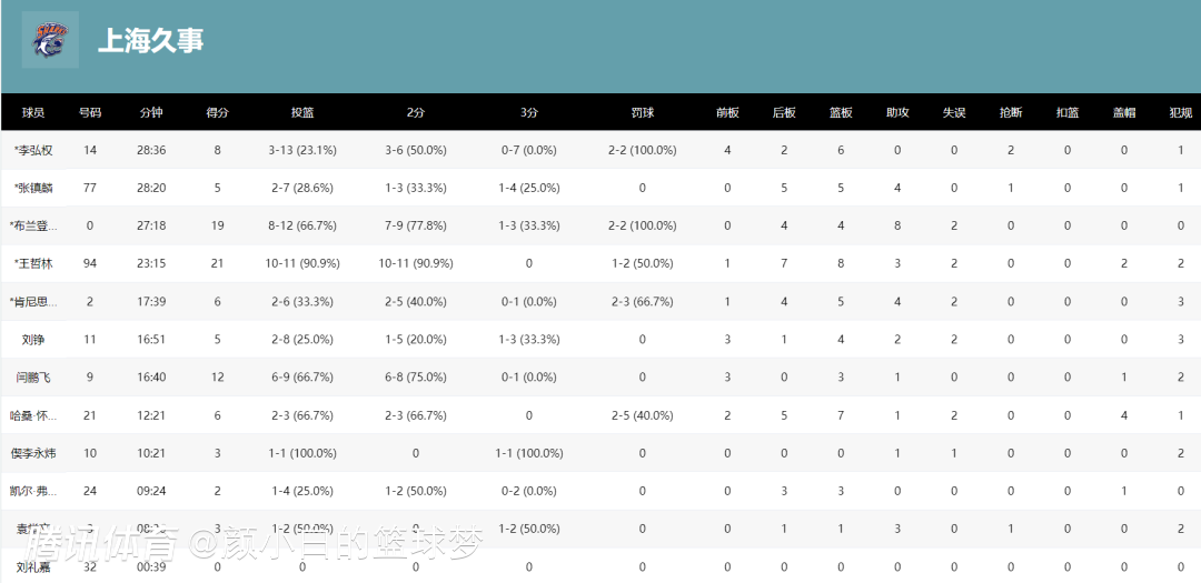 王哲林也打出了赛季最佳一战,这是王哲林本赛季首次拿到20+的数据,此前单场最高分是对阵宁波时拿下的17分,而且本赛季卢伟继续减少了王哲林的使用时间,场均只有22.6分钟,上赛季场均有28.9分钟,这也算是对老将的一种保护,王哲林也并不追求数据。