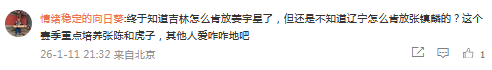 终于知道吉林怎么肯放姜宇星了,但还是不知道辽宁怎么肯放张镇麟的?这个赛季重点培养张陈和虎子,其他人爱咋咋地吧。