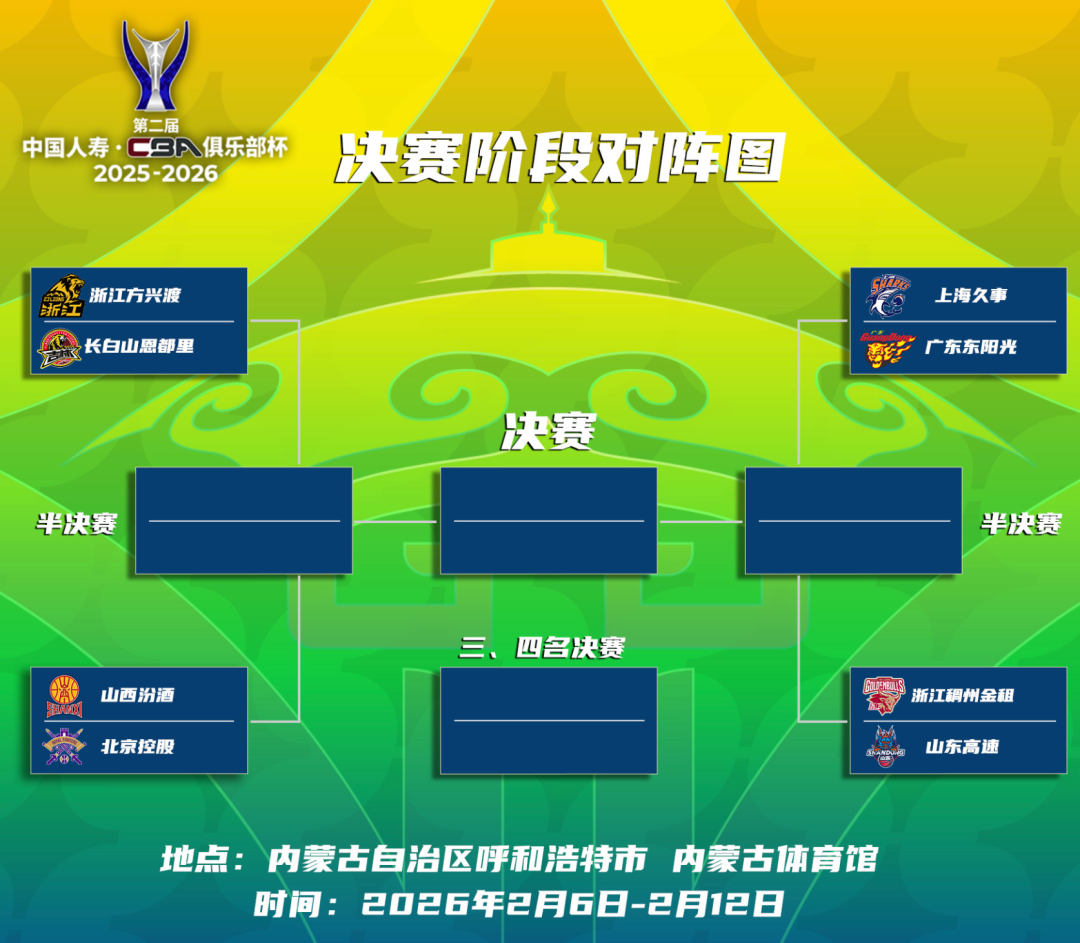 据赛事项目负责人介绍,第二届中国人寿·CBA俱乐部杯在赛事设置、参赛阵容、竞技水平等方面亮点纷呈。本次呼和浩特赛区赛事将于2月6日至12日正式开展,8支国内顶尖篮球劲旅齐聚青城,赛事采用单败淘汰制,全程将上演8场激烈对决。各支球队将在赛场上挥洒汗水、奋勇争先,以顶尖竞技水准为广大球迷呈现一场场酣畅淋漓的篮球盛宴。值得关注的是,呼和浩特赛区创新性地以赛事为核心引擎,全力推动体旅文商深度融合。
