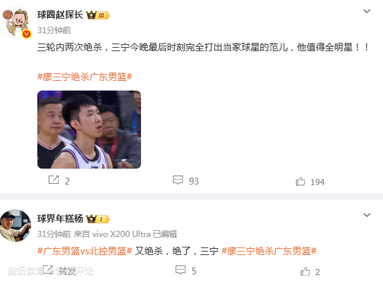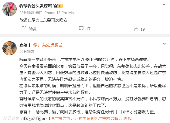 随着廖三宁命中绝杀,广东在主场以98比99输给北控,吞下主场两连败。