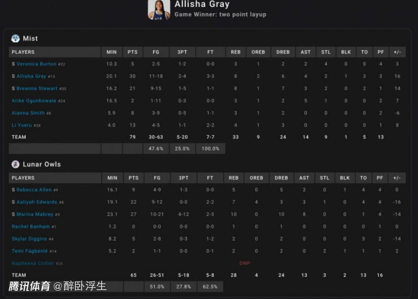 下半场李月汝仅登场1分钟,导致她全场只打了4分钟,但5中4高效得到13分4篮板数据,帮助迷雾队79-65战胜月亮猫头鹰队取得第3场胜利。