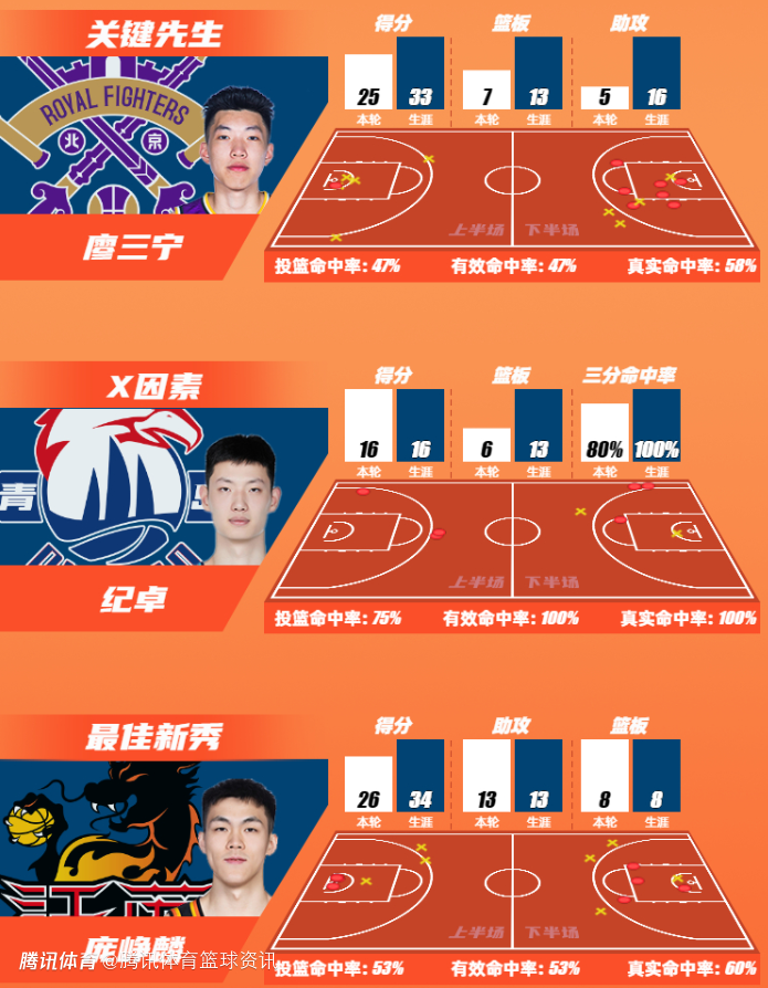 北京时间1月19日,CBA官方发布常规赛第16轮数据战报及最佳阵容。来自天津男篮的詹姆斯(26分12篮板)、青岛男篮的米奇(21分8篮板)、深圳男篮的贺希宁(32分9篮板)、江苏男篮的庞峥麟(26分13助攻)和北控男篮的廖三宁(25分7篮板)入选。