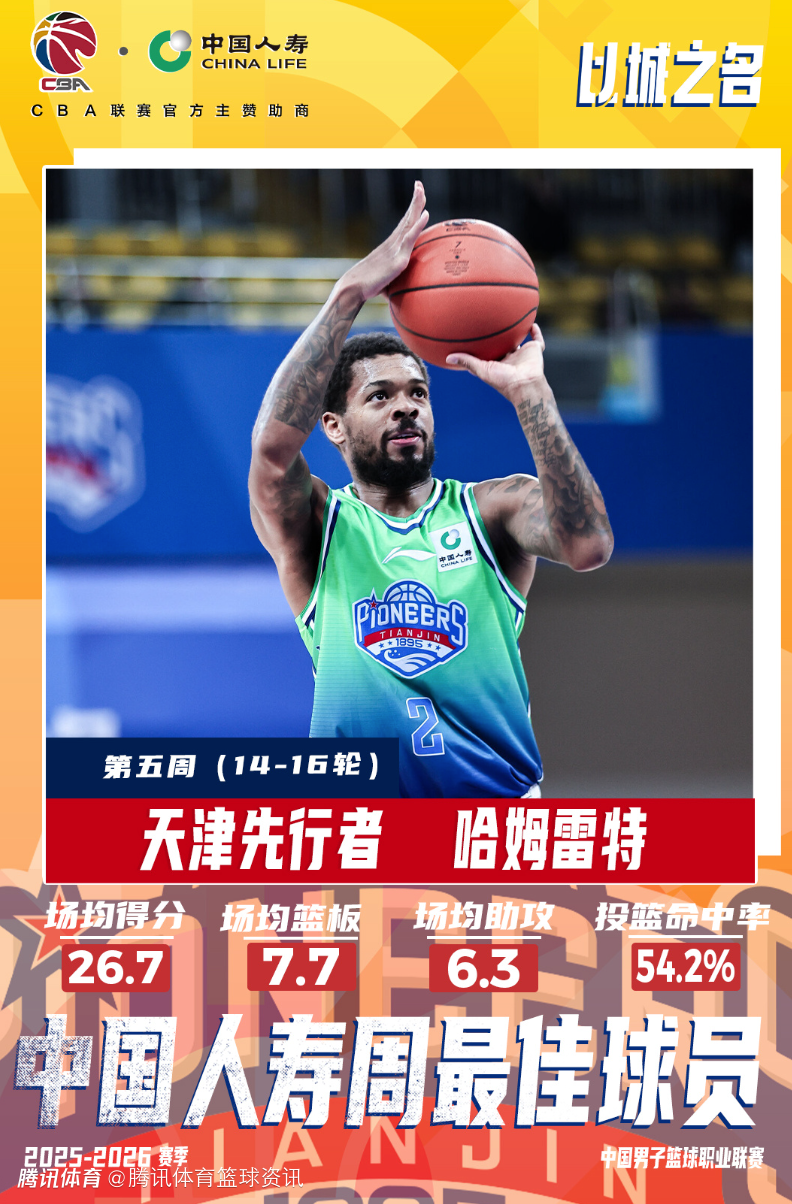 【哈姆雷特当选2025-2026赛季CBA联赛常规赛第五周中国人寿周最佳球员】