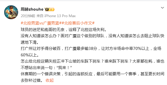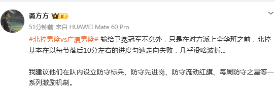 赛后,北控男篮这一波2连败引发球迷和媒体的热议。